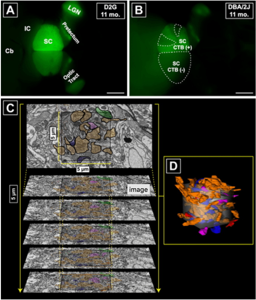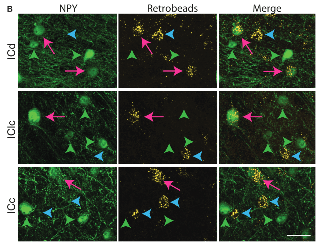 Anair, et al. (2022) Inhibitory NPY neurons provide a large and heterotopic commissural projection in the inferior colliculus. Front Neural Circuits 16: 8711924Kristaponyte, et al. (2021) Group II metabotropic glutamate receptor modulate sound evoked and spontaneous activity in the mouse inferior colliculus. eNeuro 8 (1) ENEURO.0328-20.2020Silveira, et al. (2020) Neuropeptide Y expression defines a novel class of GABAergic projection neuron in the inferior colliculus. J Neurosci 40:4685Schofield and Beebe (2019) Subtypes of GABAergic cells in the inferior colliculus. Hear Res 376:1Mellott, et al. (2018) GABAergic and nonGABAergic projections to the superior colliculus from the auditory brainstem. Brain Struct Funct 223:1923Smith, et al. (2016) Persistence of intact retinal ganglion cell terminals after axonal transport loss in the DBA/2J mouse model of glaucoma. 524:3503Mellott, et al. (2014) Descending projections from auditory cortex to excitatory and inhibitory cells in the nucleus of the brachium of the inferior colliculus. Front Syst Neurosci 8:188Mellott, et al. (2014) Distribution of GABAergic cells in the inferior colliculus that project to the thalamus. Front Neuroanat 8:17